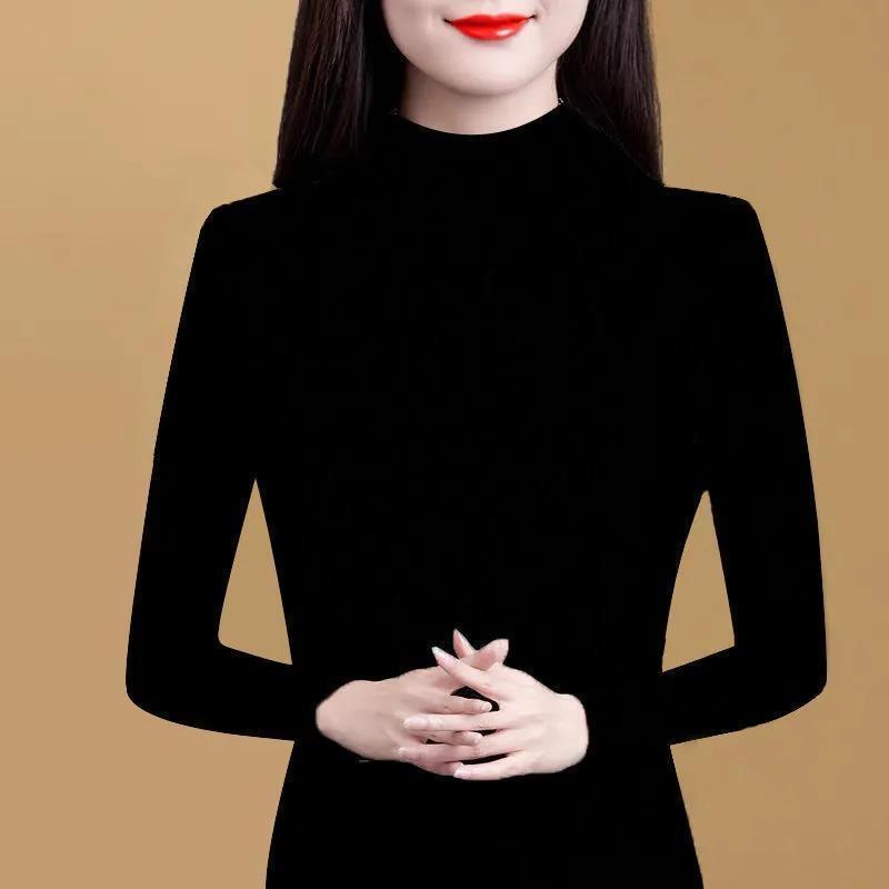 Осенне-зимние теплые топы, модная одежда, женские повседневные футболки с длинными рукавами, вязаный пуловер, свитера, базовая нижняя рубашка