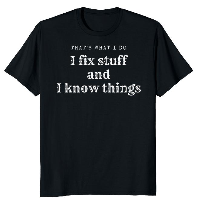 Я чиню вещи и знаю вещи Футболка унисекс — купить товар онлайн с бесплатной доставкой по всему миру!