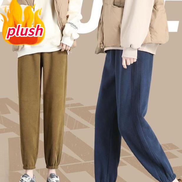 Зимние модные шаровары с эластичной резинкой на талии, утепленные спортивные штаны, теплые флисовые женские брюки
