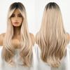 Длинные волны синтетические парики Ombre черный блондин парик с боковой челкой термостойкое волокно повседневные вечерние волосы косплей парики для женщин