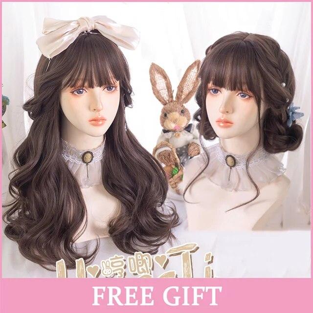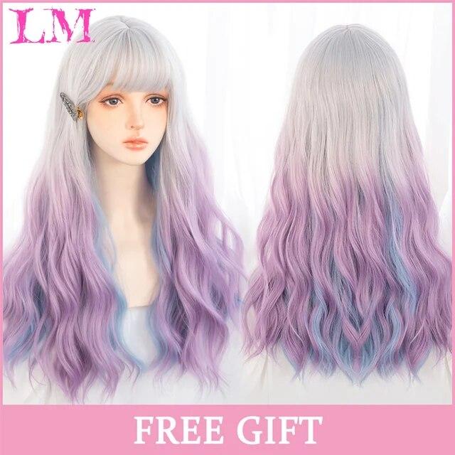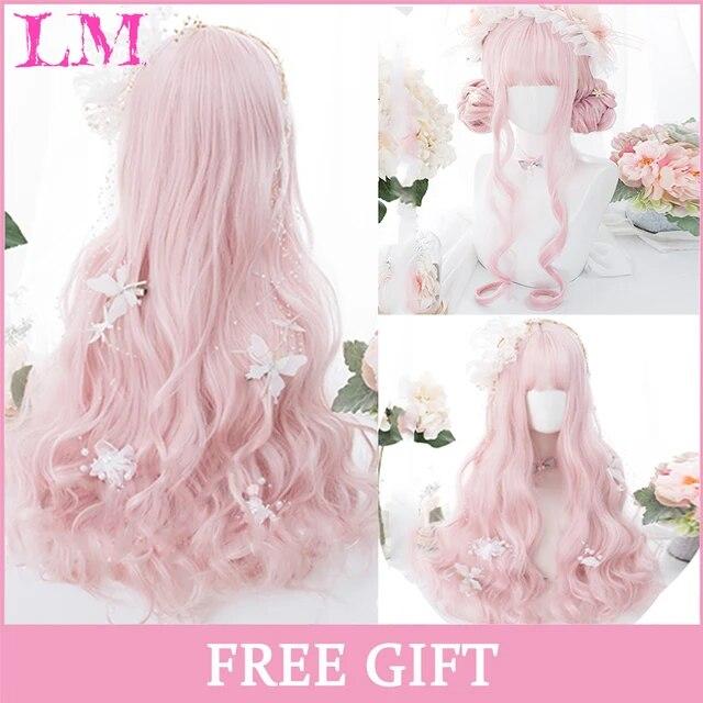 Синтетические волосы, длинные волны, черные и розовые парики Лолиты для женщин, парик для косплея с челкой, термостойкий для Хэллоуина и Рождества