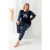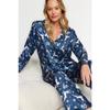 Темно-сине-разноцветный атласный пижамный комплект с новогодней тематикой Thmaw24pt00037