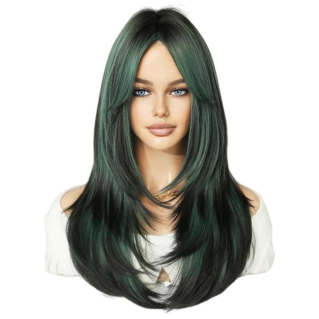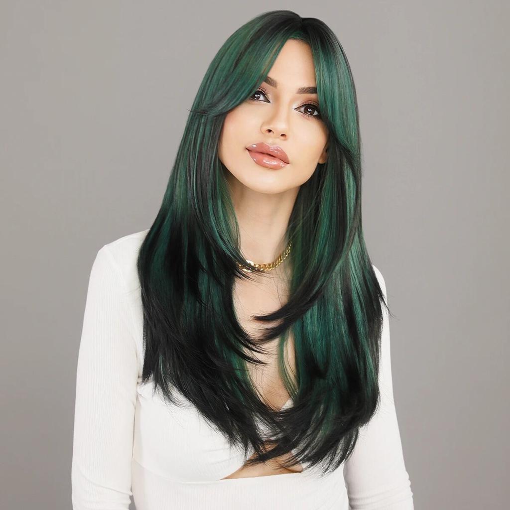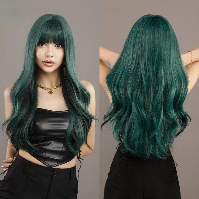 Пушистые лавандовые синтетические зеленые парики для женщин, повседневный косплей, новый тренд, средняя часть, волнистые зеленые волосы, парик, термостойкое волокно