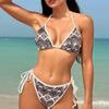 Женский леопардовый купальник, двухсекционный купальник на шнуровке, сексуальные комплекты бикини, пляжная одежда для женщин