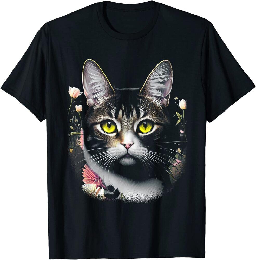 Отличная футболка унисекс с супер милым котом в цветочном дизайне