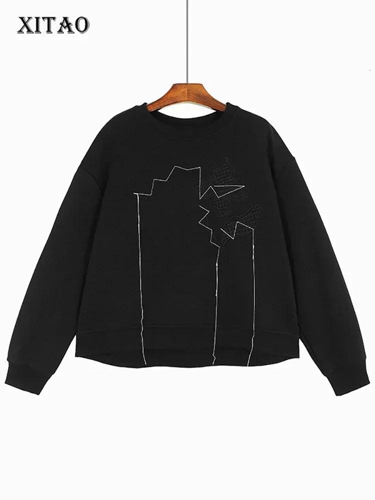 XITAO лоскутные толстовки с круглым вырезом и вышивкой, пуловеры, свободные однотонные повседневные топы DMJ3172 — купить товар онлайн с бесплатной доставкой по всему миру!