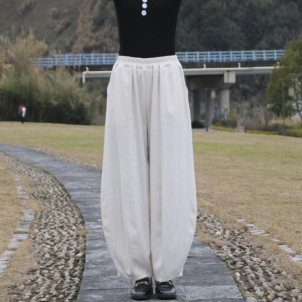 Женские модные однотонные широкие брюки из хлопка и льна с высокой талией, брюки для йоги, свободные шаровары
