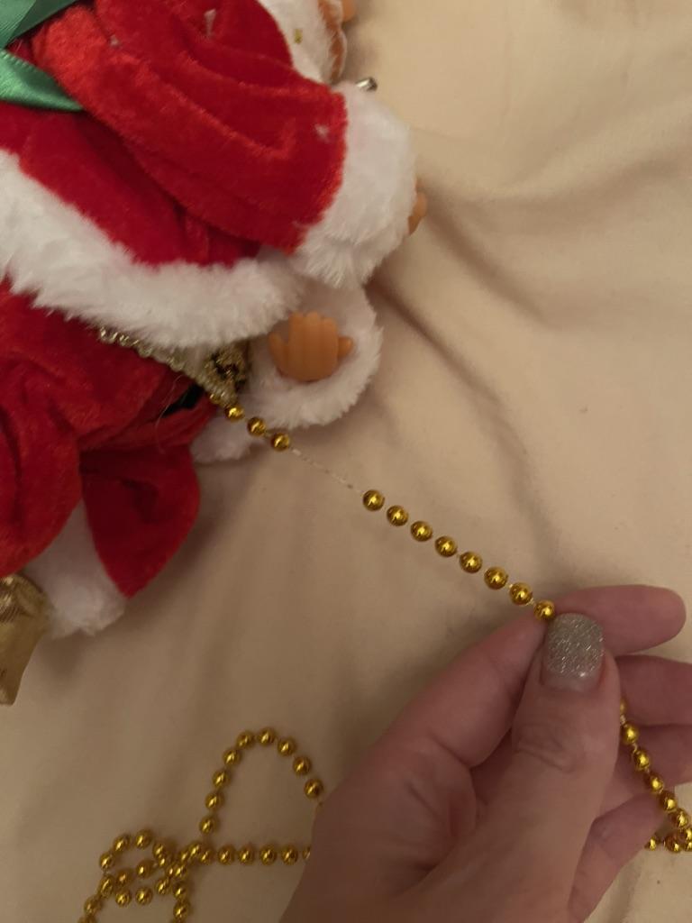 Сначала включали и он не работал, на видео видно, некоторых бусин нет, потом заработал и ребенку очень понравилось) отличный Дед Мороз и когда до верха поднимается, то думаю отсутствие бусин его тормозит чтоб не слез, ну это мое предположение )) а так довольно громкий, светится. Симпатичный и милый)