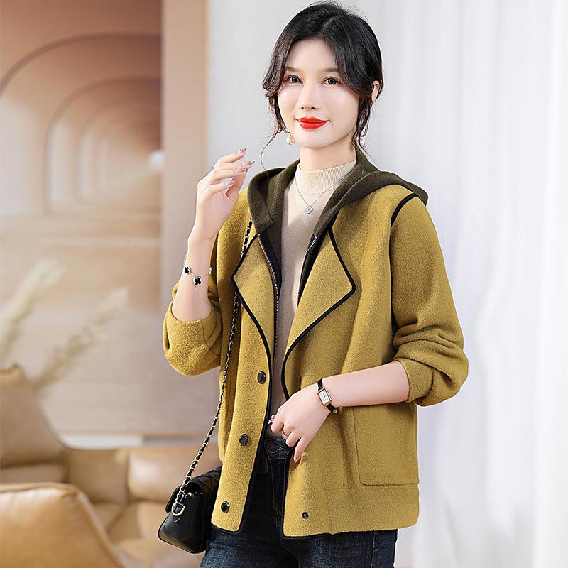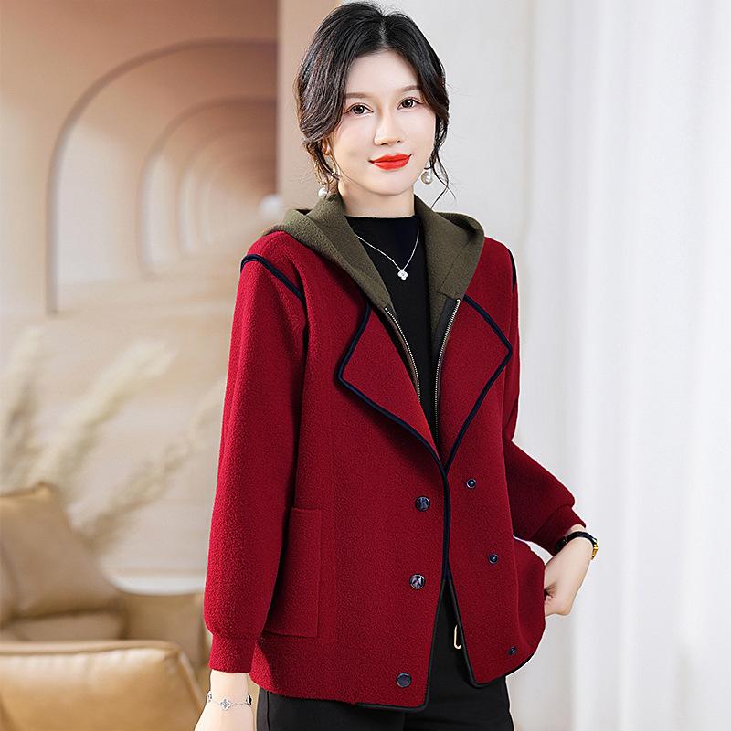 Осенние и зимние новые мамины фальшивые две куртки, женский топ с капюшоном в стиле среднего возраста, шерстяная вязаная верхняя одежда в западном стиле