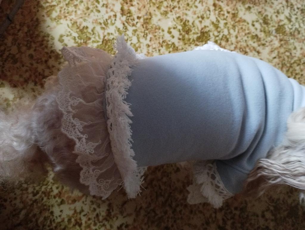 Товар отличного качества,швы ровные,нареканий нет. Размер S подошёл на той терьера 4 мес.Единственный пока минус- щенок не может пока бегать в этом наряде(не привык скорей всего),но на ручках на улице сидит нормально,не м5
