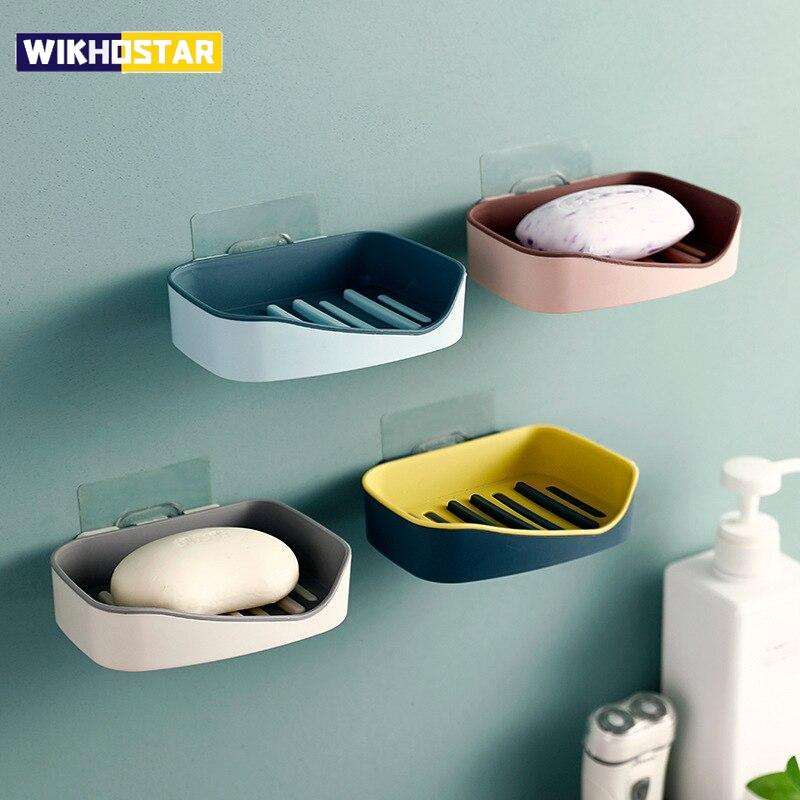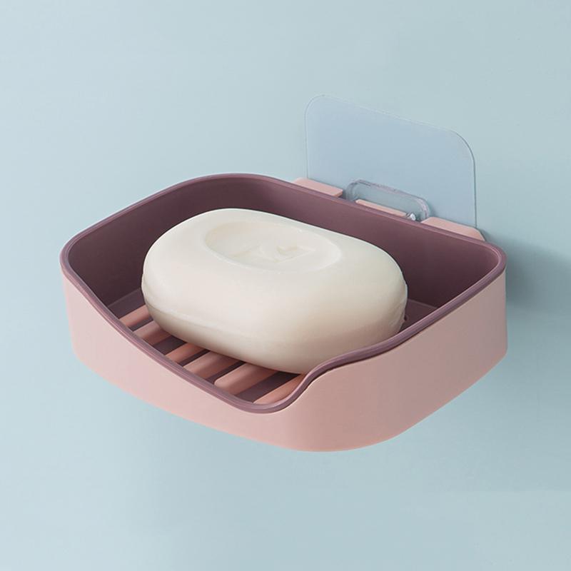 Держатель для мыла Набор аксессуаров для ванной комнаты Сливная полка Мыльница Настенная двухслойная подставка для мыла Стеллаж для хранения губки для мыла
