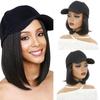 Парики со шляпой, короткий прямой парик из волос боб с бейсбольной шляпой для женщин и девочек, синтетические термостойкие парики из волос с регулируемой шляпой