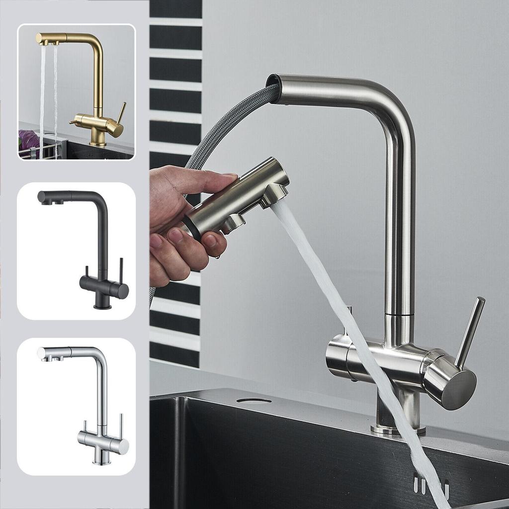 Кухонный выдвижной кран с фильтром, хромированный латунный кран-очиститель, вращение на 360 градусов, двойной распылитель, кран для питьевой воды, смеситель для раковины, сосуда — купить товар онлайн с бесплатной доставкой до всему миру!