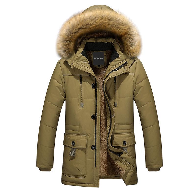 Зимнее мужское хлопковое пальто средней длины, мужское утолщенное хлопковое пальто с капюшоном, большого размера