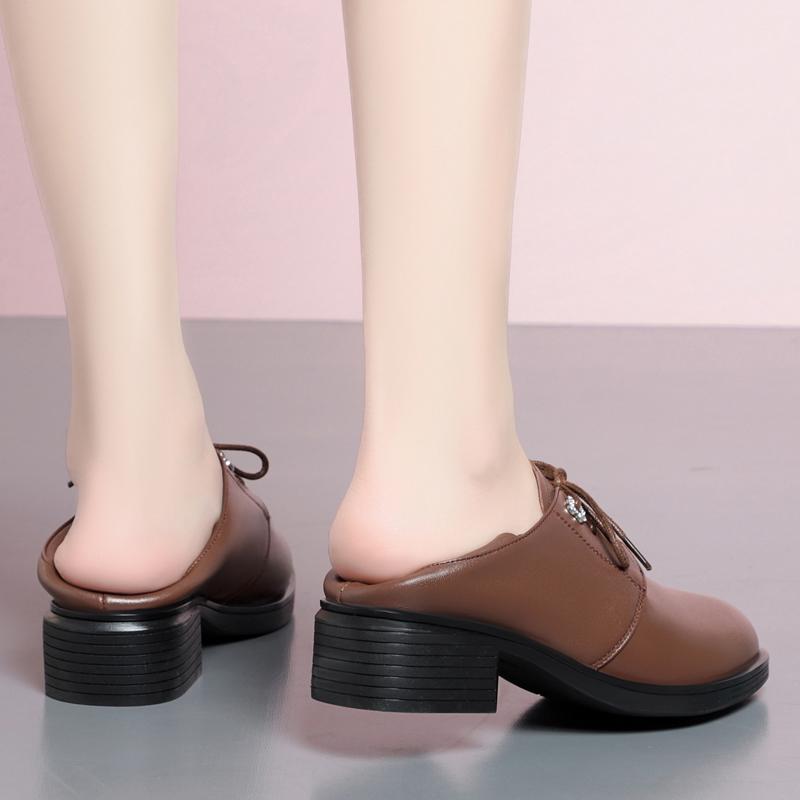 Женская модная обувь, женская обувь из натуральной кожи на шнуровке, массивная женская обувь большого размера