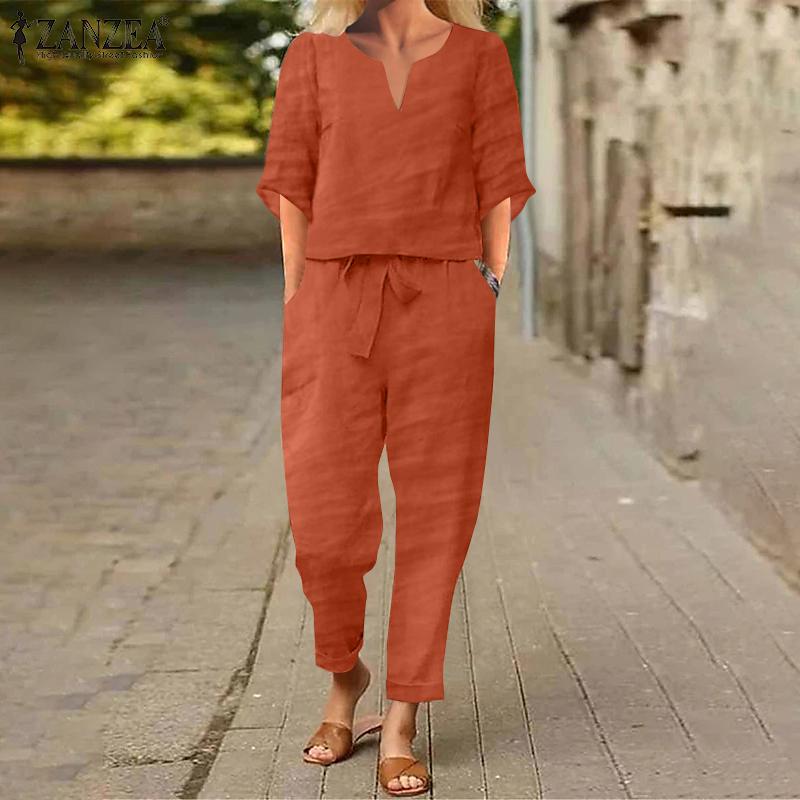 ZANZEA Женская повседневная блузка и брюки, летний брючный костюм из двух предметов — купить товар онлайн с бесплатной доставкой до всему миру!