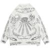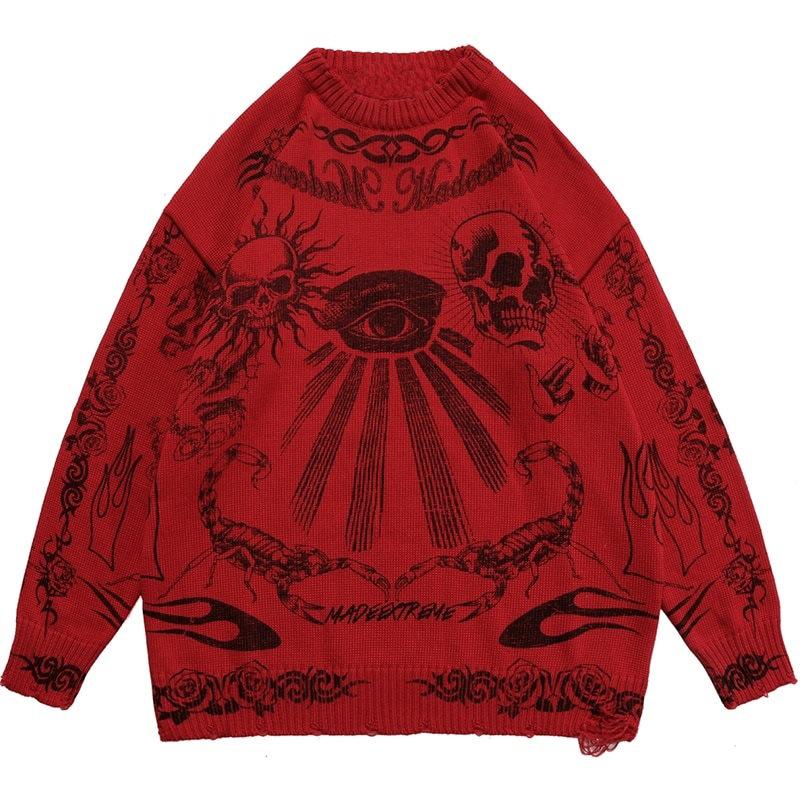 Готическая мода Harajuku Панк-рок Хип-хоп Череп Темное пламя Y2KO Воротник с длинным рукавом Вязаный свитер