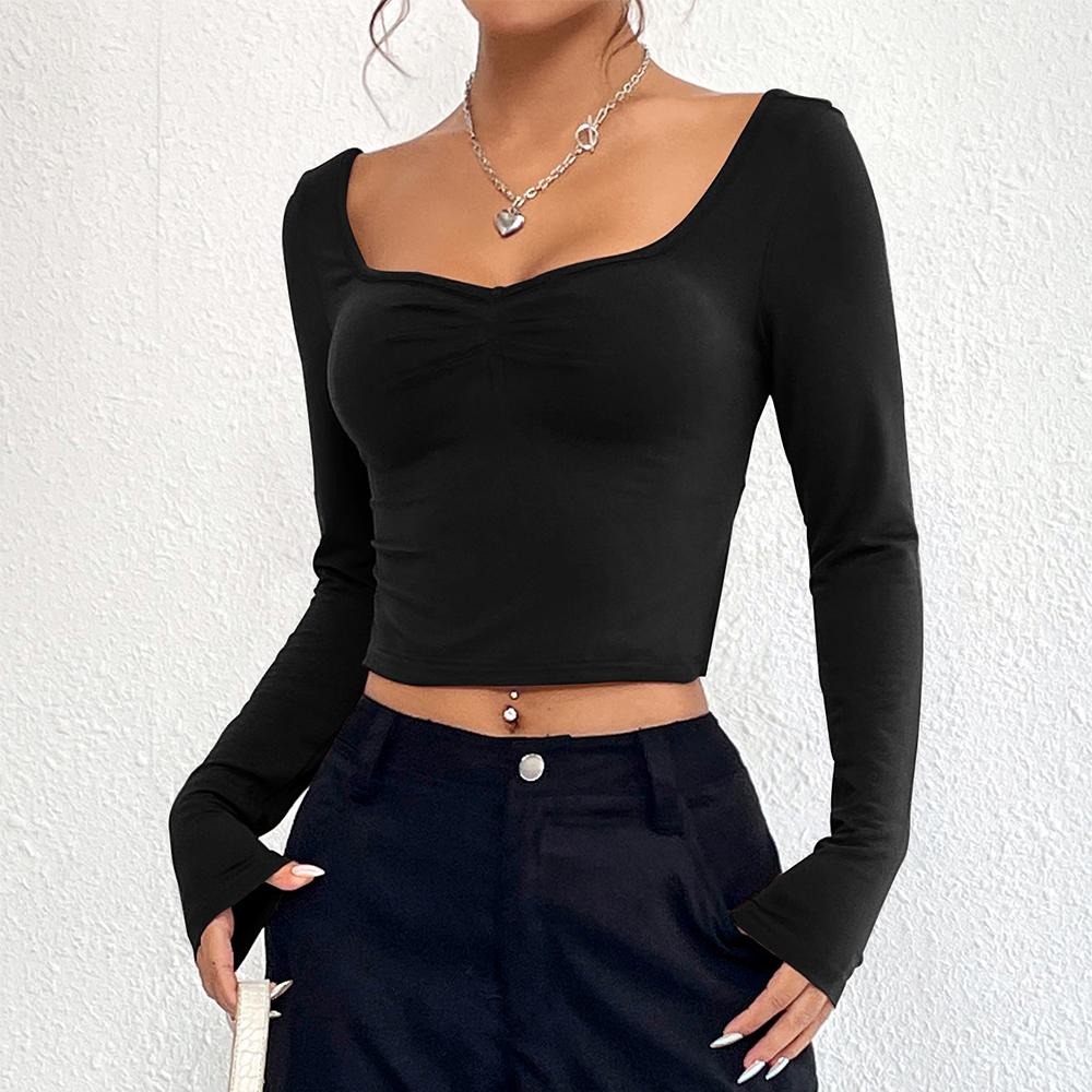 JKAASHDK Женские модные повседневные однотонные пуловеры с круглым вырезом и длинными рукавами на весну и осень