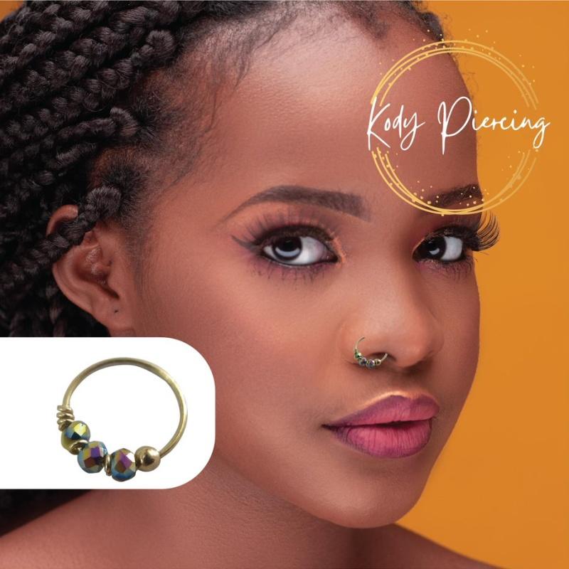 KODY PIERCING Пирсинг из 9-каратного золота с разноцветными фарфоровыми бусинами, кольцо в носу - качественный пирсинг