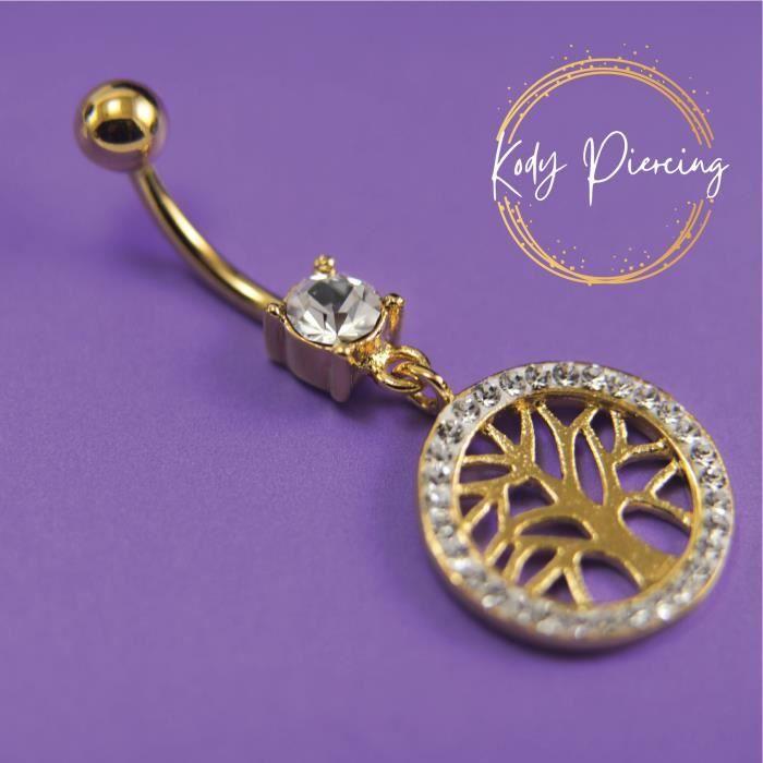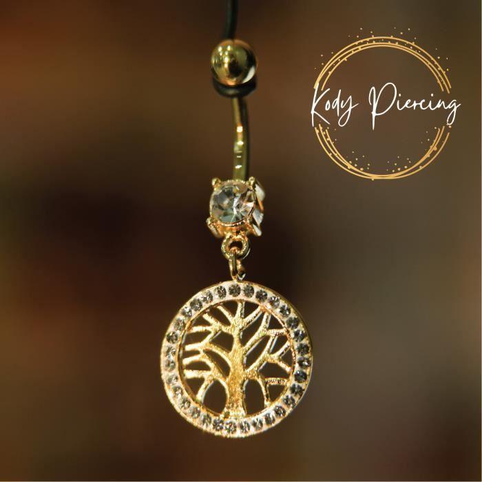 KODY PIERCING Пупок «Древо жизни», окруженный кристаллами, с гладким шариком - покрытие из 18-каратного золота