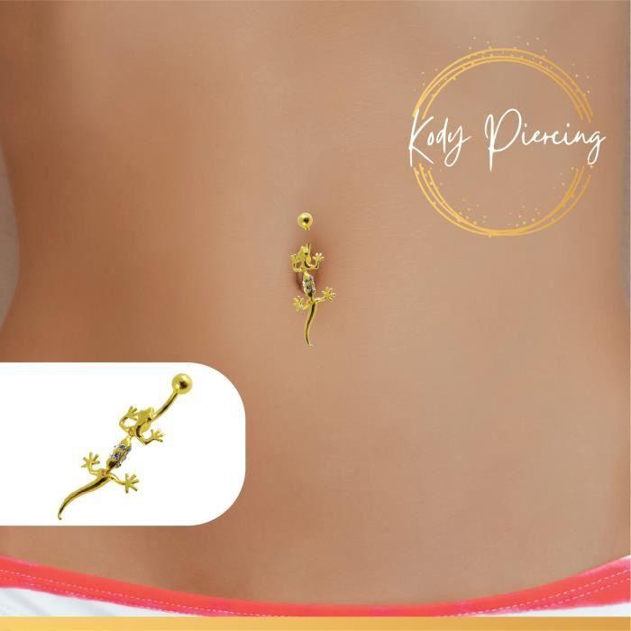 KODY ПИРСИНГ Пупок саламандры, покрытие из желтого золота 18 карат, инкрустация цирконами — купить товар онлайн с бесплатной доставкой по всему миру!