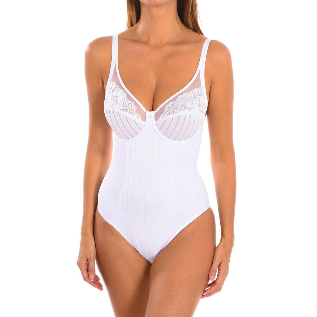 Это корректирующее боди с бретелями сочетает в себе элегантность и функциональность. Оно подчеркивает фигуру благодаря изысканной и изысканной посадке.. Сочетание кружева и моделирующей ткани делает его идеальным предметом одежды как для особых случаев, так и для повседневного использования.