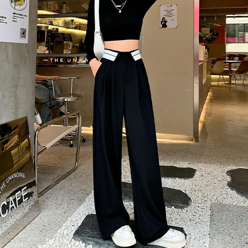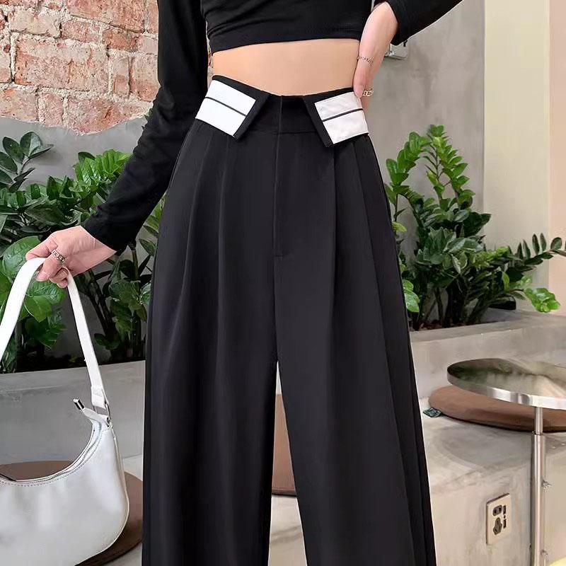 Женская одежда, винтажный костюм, офисная одежда, прямые брюки, мешковатые широкие брюки с высокой талией, 2023, летние брюки в корейском стиле