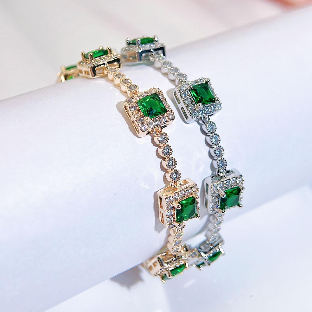 CMM красивые зеленые циркониевые серебристые позолоченные модные квадратные браслеты с подвесками для женщин — купить товар онлайн с бесплатной доставкой по всему миру!