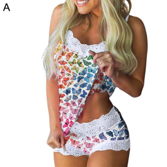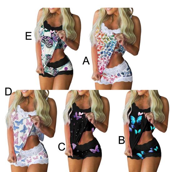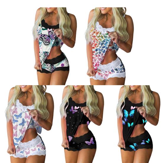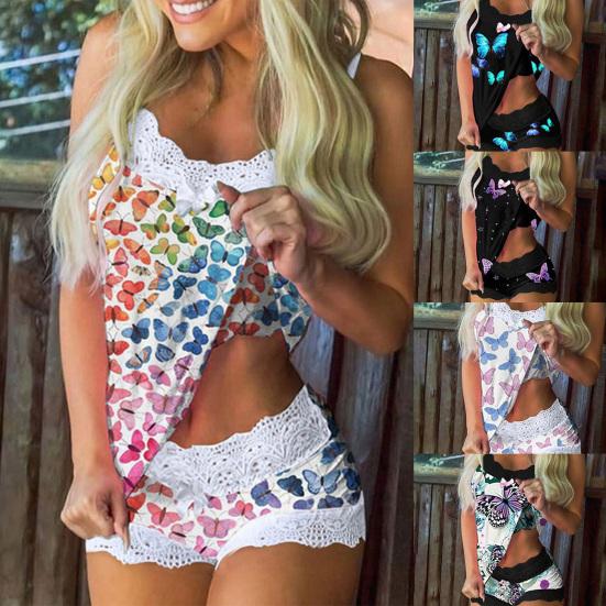 Принимая красочный дизайн принта бабочек, этот набор пижамы очень красив и моден, и он позволяет вам быть более очаровательным. Кружевной дизайн заставит вас выглядеть немного сексуально.
