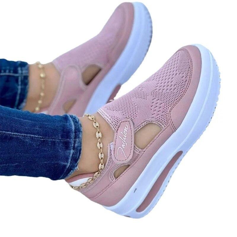 Красная повседневная обувь, женские сандалии с дышащей сеткой, модные брендовые летние женские сандалии на платформе, вулканизированная обувь, новые женские кроссовки