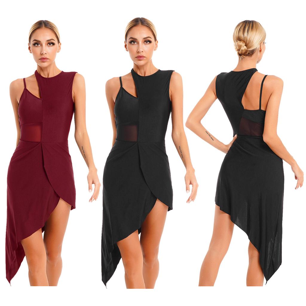 Женская одежда для выступлений, танцевальная одежда, сетчатое лоскутное платье с высоким низким лирическим сценическим платьем для самбы