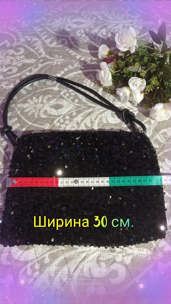 ✨Сумочка - клатч в чёрном 🖤цвете , расшитая пайетками! ✨Конечно же, я не могла пройти мимо неё, так как у меня были заказаны точно такие же балетки! Ну и, как настоящий сорочий маньяк 😄😆😉, я её купила и ничуть не пожалела! Хотя есть различия по описанию! Эту красоту трудно назвать сумочкой, но вместимость хорошая и вид тоже! По размеру совсем не совпадает с представленными цифрами продавца! Сумочка плоская ,дна нет и нет тех самых 9 см в глубину!У другой покупательницы есть дно и есть карман внутри, но за эти деньги мне всё равно нравится! Вот как раз тот случай, что иногда товар приходит разный от одного продавца! ✨Сшита аккуратно, замочек работает, отделение одно, без карманов! Пайетки пришиты крепко! Ремень не понравился, заменила на цепь! С цепью гораздо интереснее вид! ✨Рассказала и показала подробно в видео🎥🎥🎥 для тех, кому это интересно!!! ✨Всем Мира и Добра!!! ❤❤❤❤❤ 🎀🛍🎀🛍🎀🛍🎀🛍🎀🛍🎀🛍🎀🛍 💥Девочки мои хорошие! Сумочка супер!!! Проверила её временем! Брала с собой в поездку и не расставалась с ней! В ней были все ценные вещи, которые всегда были при мне😇 и при этом сумка служила украшением💓! Лёгкая, удобная и стала любимым аксессуаром👍👍👍❗💯💯💯