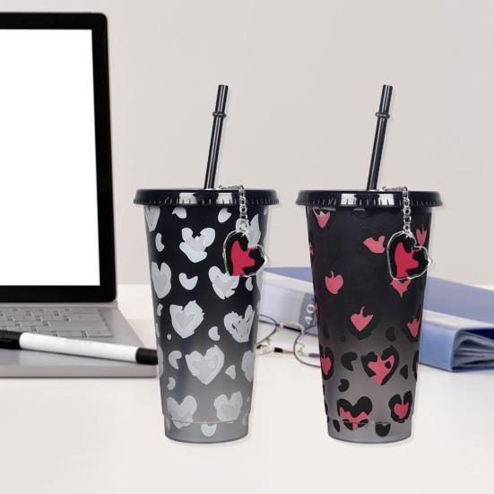 710 мл кружка с меняющим цвет соломенным узором и принтом, устойчивая к падениям сердце с брелоком, пищевая соломенная чашка