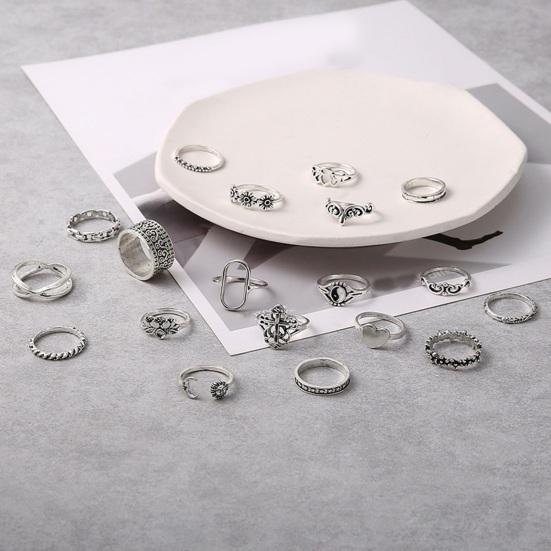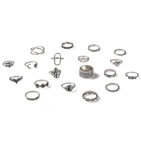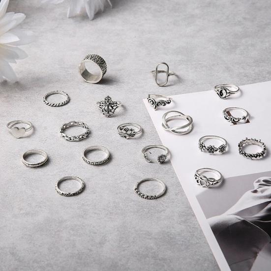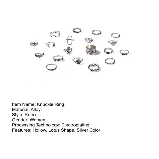 19 шт./компл. ретро полый цветок лотоса в форме сердца комплект колец эстетическая эмаль серебряного цвета кольцо на сустав пальца ювелирный подарок