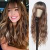 LOUIS FERRE Черные волнистые синтетические парики для женщин, натуральные длинные волосы с челкой, парик из термостойкого волокна для ежедневного использования