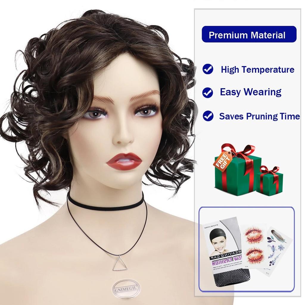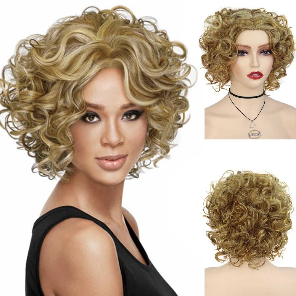Синтетические короткие вьющиеся парики для женщин, парик из натуральных волос, яркий парик, подарок матери, 80-е годы, парик для мамы, парик для старушки