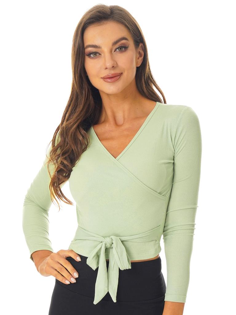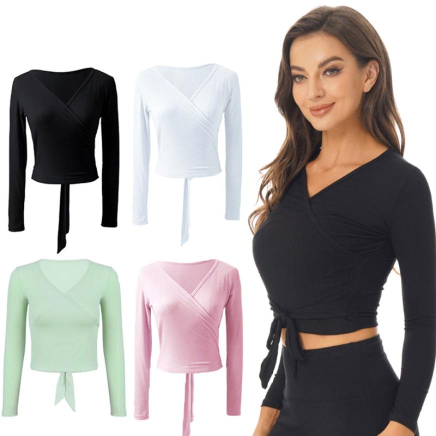 Женская однотонная куртка с запахом, балетная куртка, болеро с длинными рукавами, топ с запахом, танцевальная одежда для тренажерного зала, йоги, балета, современного танца