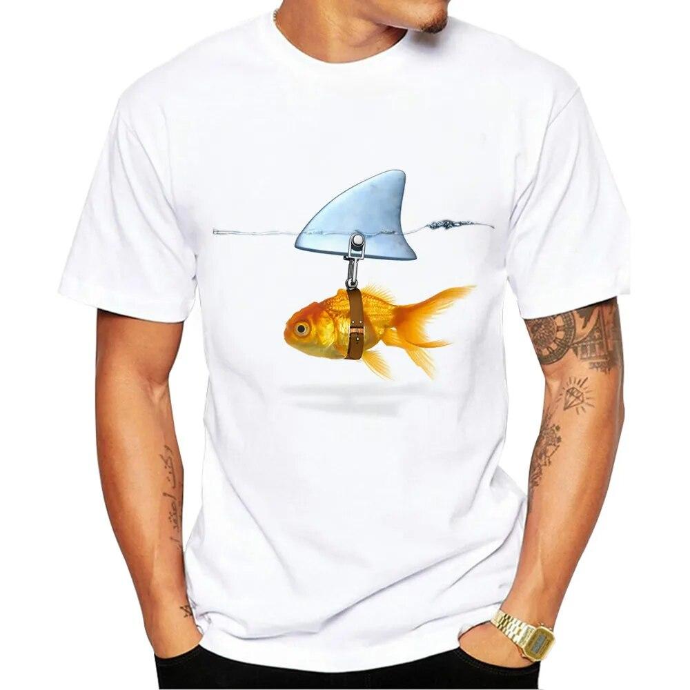 Футболка с золотой рыбкой и акулой, мужская футболка с крутым принтом рыбы, мужская повседневная футболка, мужская