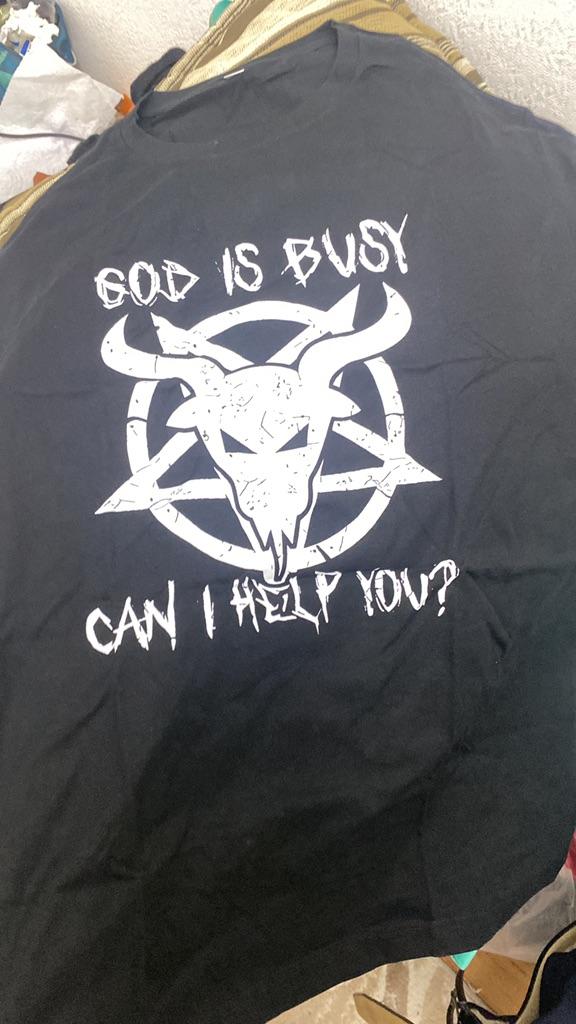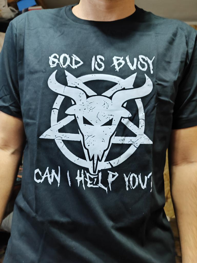 Мужская черная футболка с принтом Супер большая футболка Бог занят, я могу помочь тебе рубашка забавная сатана коза No-Cut Переносная бумага с принтом Хлопковая футболка — купить товар онлайн с бесплатной доставкой по всему миру!