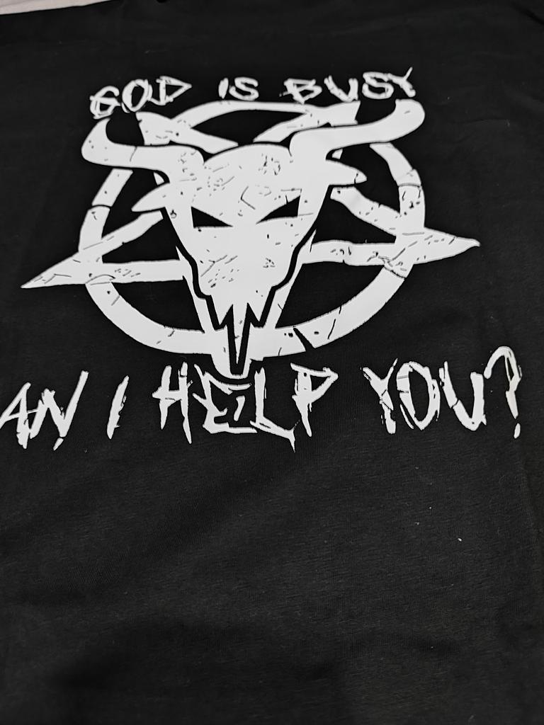 Мужская черная футболка с принтом Супер большая футболка Бог занят, я могу помочь тебе рубашка забавная сатана коза No-Cut Переносная бумага с принтом Хлопковая футболка