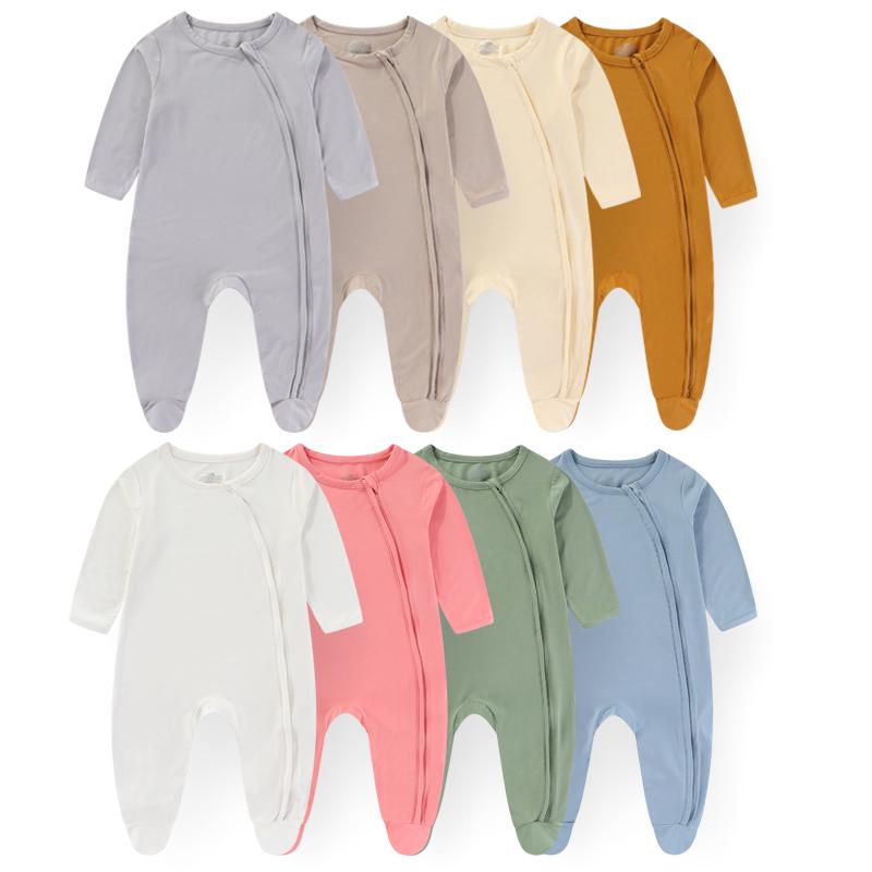 KIDDIEZOOM 1 шт. для маленьких мальчиков и девочек 0-12 месяцев, бамбуковое волокно, унисекс, повседневные однотонные комбинезоны с длинными рукавами и двусторонней молнией, с запахом ног, детские комбинезоны, осень-зима