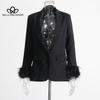 Элегантный пиджак в европейском и американском стиле, новинка 2023 года, модный тонкий пиджак с вырезом и строчкой из перьев, облегающий тонкий пиджак