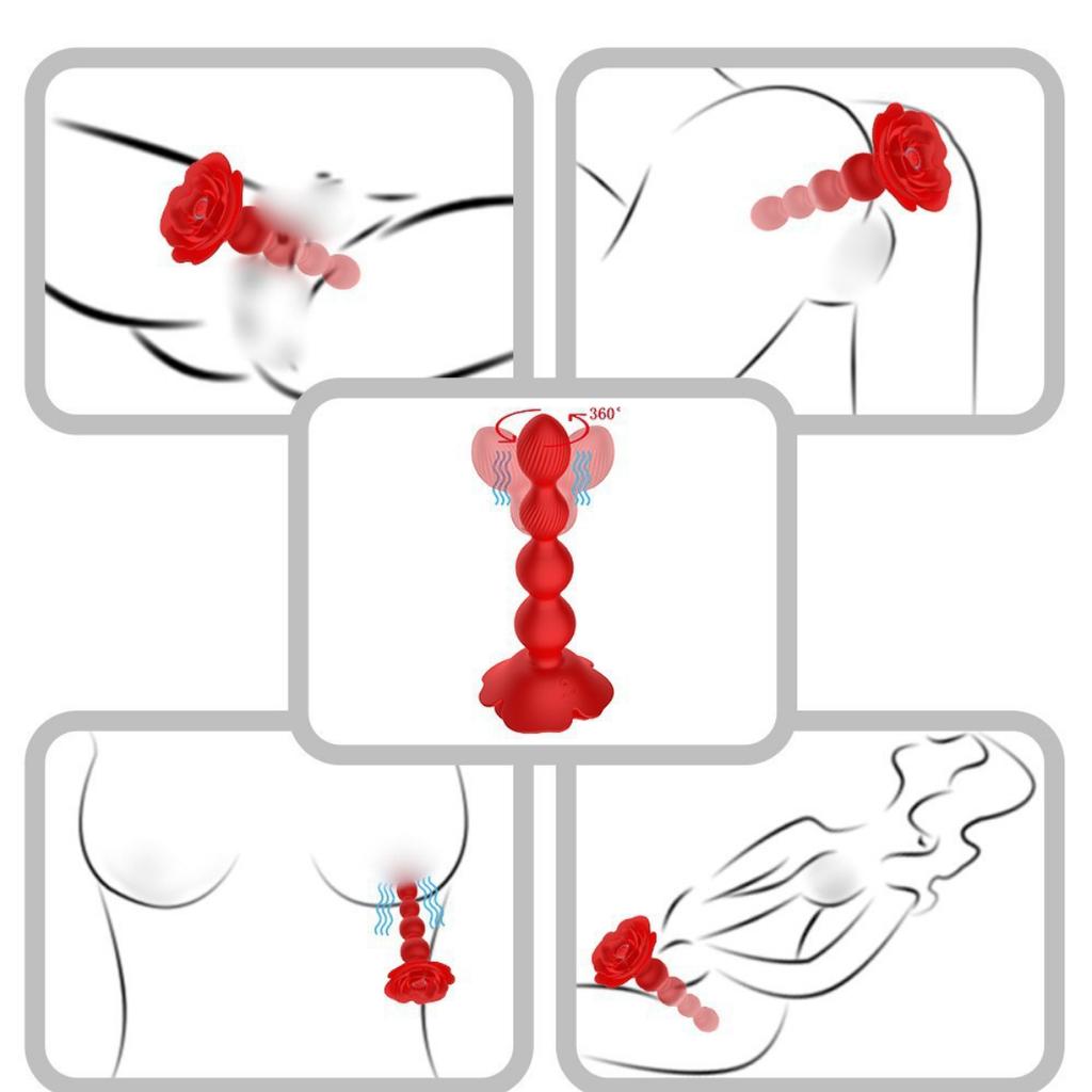 Вращение на 360 градусов, Анальная пробка, вибратор с 10 вращающимися и вибрационными режимами, массажер простаты, форма розы, анальные бусины, секс-игрушки для женщин и мужчин