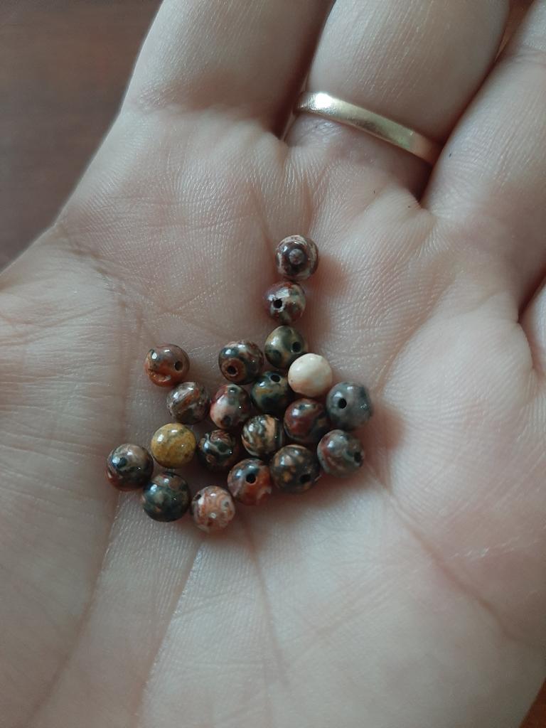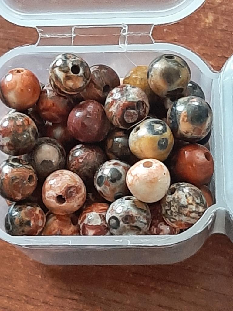 Качественные бусины Леопардовой Яшмы. Предложение было гораздо интересней. У меня на бусинах засилье чёрного и тёмно-серого цветов, увы.