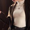 Осенне-зимняя женская нижняя рубашка с воротником до середины шеи и мягкой подкладкой, тонкая однотонная нижняя одежда, черная узкая блузка с длинными рукавами