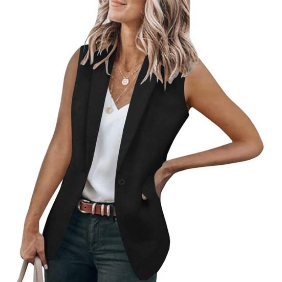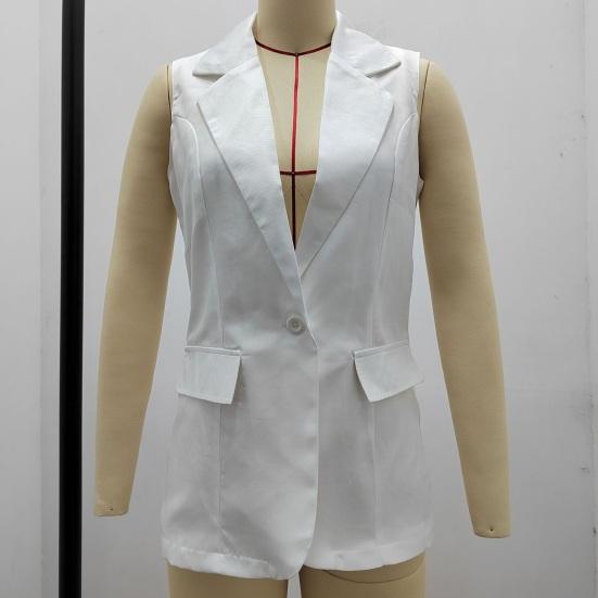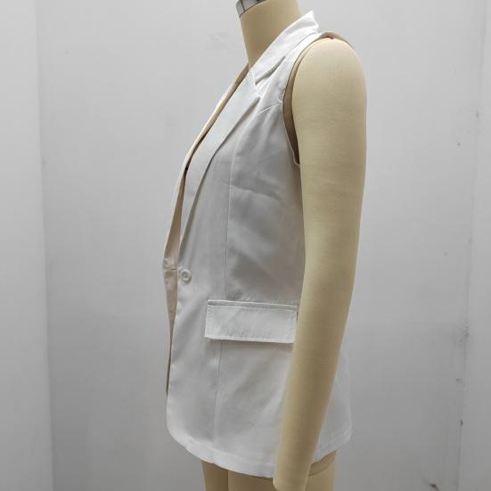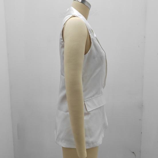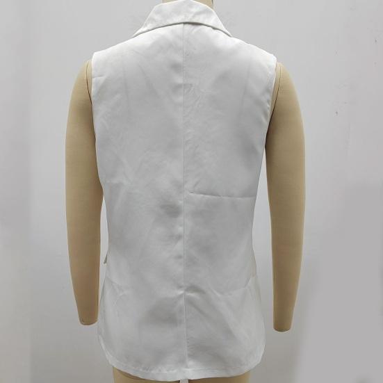 Представляем наш женский летний костюм-пальто — универсальное и стильное дополнение к вашему гардеробу.. Это пальто-жилет имеет лацканы, дизайн без рукавов и два боковых накладных кармана, что делает его модным.
