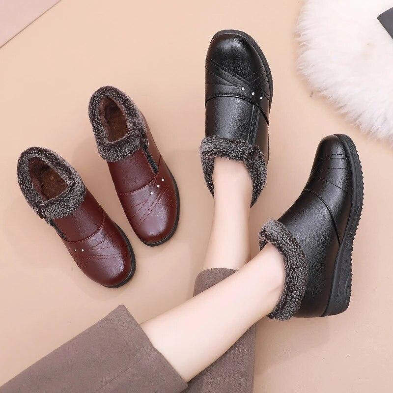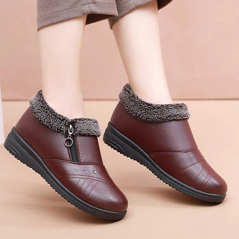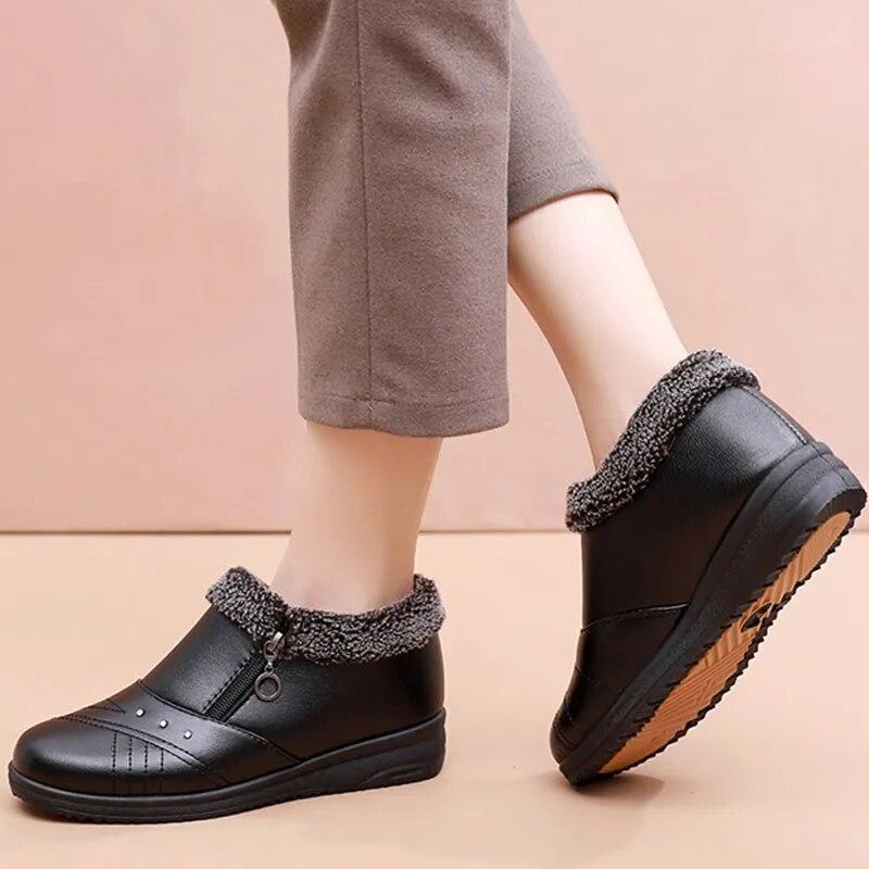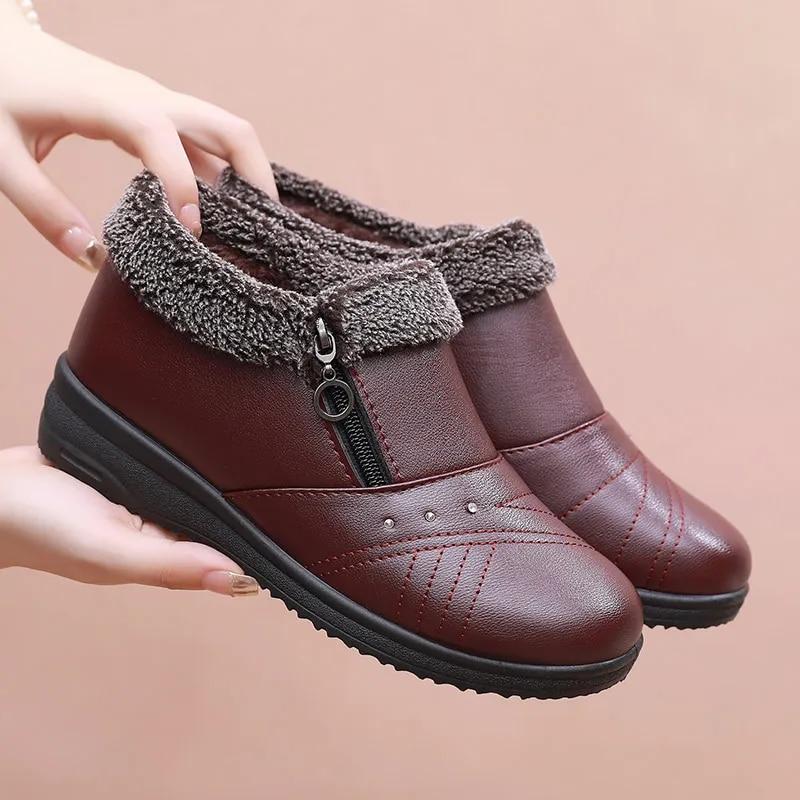 Повседневные зимние ботинки для женщин, 2023 г., нескользящие плюшевые зимние ботинки на молнии, женские однотонные теплые ботинки на плоской подошве с хлопковой подкладкой для мамы