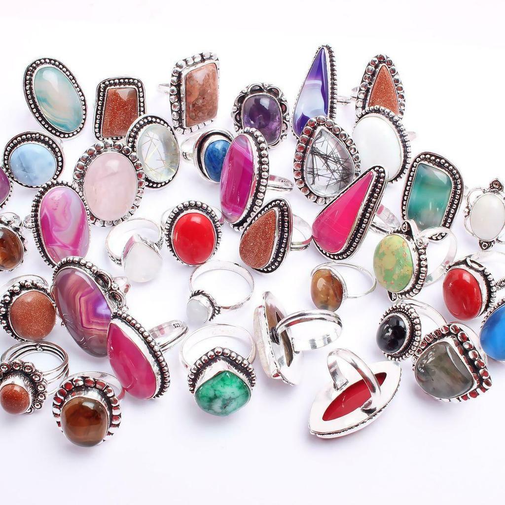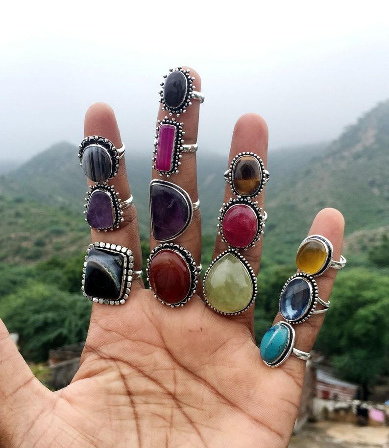 5 шт. Кольца с натуральными драгоценными камнями, винтажные кольца, кольца ручной работы, ремесленные украшения, женские кольца, серебряные кольца, массивные кольца, кольца ручной работы