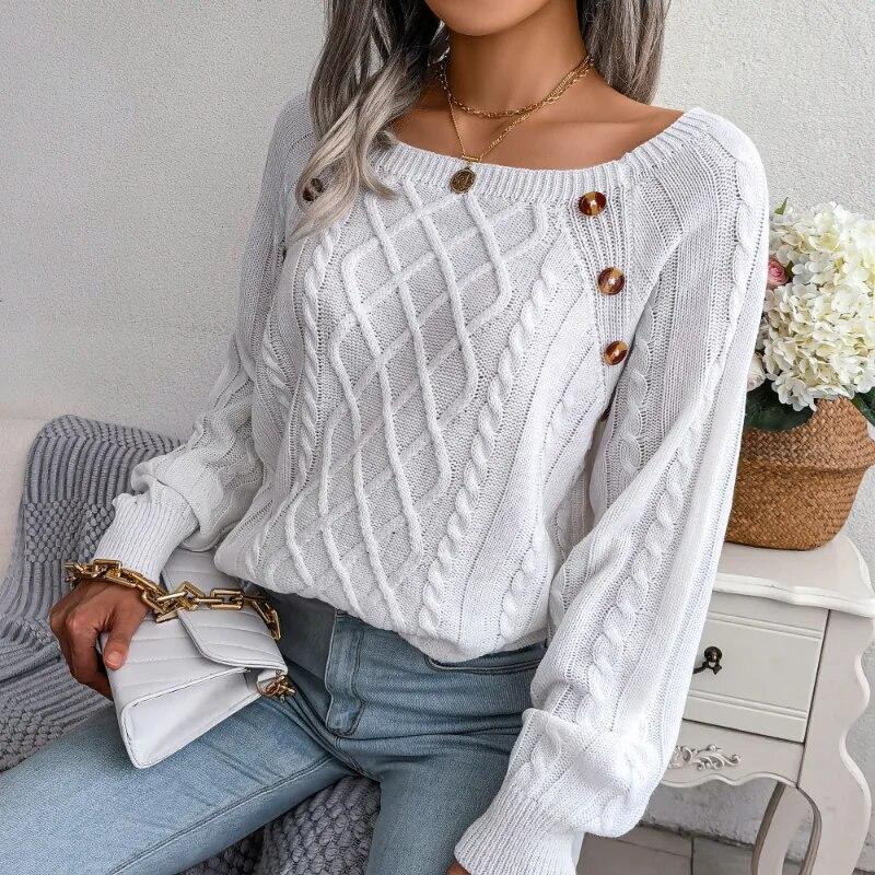 2023 весенняя мода, свитер, одежда, однотонный повседневный вязаный пуловер с квадратным вырезом и пуговицами, топы с длинными рукавами для женщин 23721 — купить товар онлайн с бесплатной доставкой по всему миру!