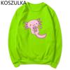 Забавные женские милые толстовки с капюшоном «Аксолотль любит пузырьковый чай» Толстовка с принтом Свободная толстовка с капюшоном большого размера с мультяшным принтом Уличная одежда Розовая одежда